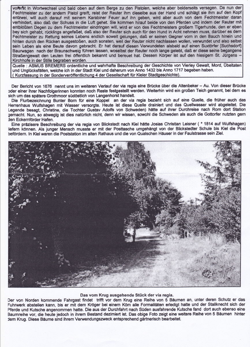 Der Verlauf der historischen "via regia" ist der private Feldweg bis zur Höhe Bahnübergang, und gehört als Grünfläche zum landwirtschaftlichen Betrieb. |