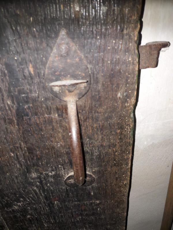 Eine riesige, 2flügelige Holztür mit innen liegendem hölzernen Querriegel und dazugehörigem Zapfen verschließt die geteilte Dielentür inwendig. In Teilen ist in der Diele alles Original erhalten, wie in einem Dorfmuseum...